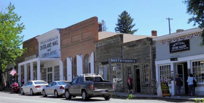Rich placer diggings were discovered in Alder Gulch in the spring of 1863 and the stampede of gold seekers was on! Sluices soon lined the gulch and various "cities" blossomed forth as trading and amusement centers for free handed miners. Virginia City is the best known of these and the sole survivor. Wood sidewalks and various shops, some stocked with goods, line both sides of the main street. Today we visited this gold mining town located 90 miles from West Yellowstone. The State of Montana paid $6.5 million to buy nearly 250 buildings and their contents in Virginia City and nearby Nevada City in 1998. Most buildings are now restored in "arrested decay", with new structural support and roofs, leaving the rest of the structure just as time has aged it. Virginia City was designated a National Historic Landmark in 1961 and listed on the National Register of Historic Places in 1966. |